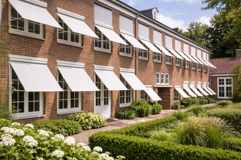 Markisolettes weren laagstaande zon en behouden het zicht naar buiten. Ideaal voor hoge ramen.
